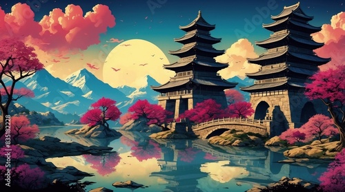Illustration of cherry blossoms in Asia