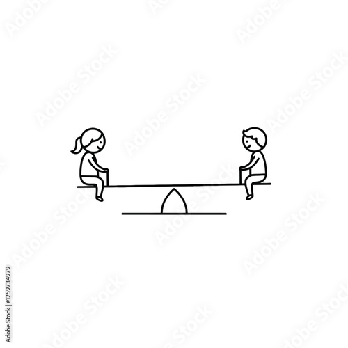 Illustration of Children Playing on a See-Saw Together Outdoors