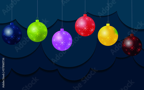 illustration of christmas background with new year christmas balls and design for text. Copy space