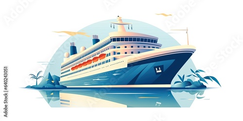 Illustration of cruise ship travel on a white isolated background