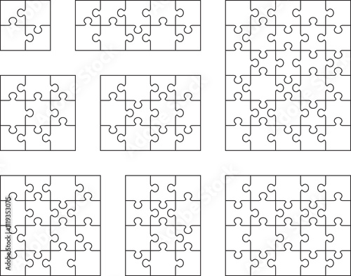 Illustration of eight white puzzles, separate parts