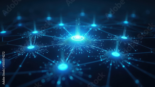 Illustration of interconnected glowing orbs in a futuristic pattern.