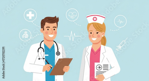 Illustration of medical professionals doctor and nurse healthcare team concept for hospital or clinic 100