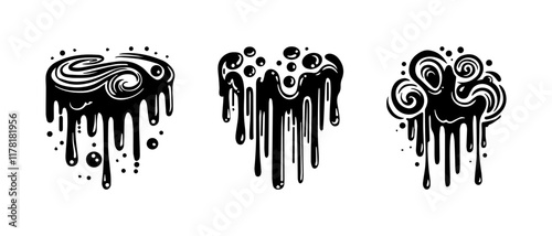 illustration of melting water elements, pouring water, graffiti art on a white background