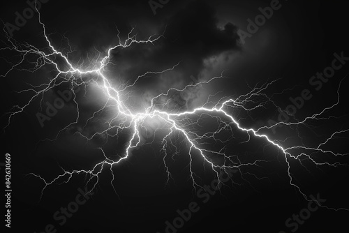 Illustration of natural phenomena, large lightning in the dark sky. It is an unusual picture for collages.