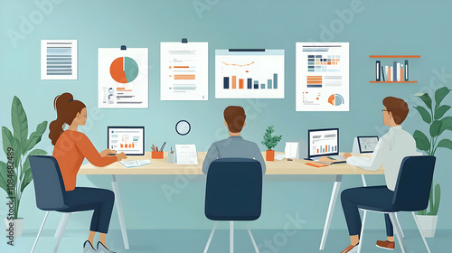 conference room, business, growth, technology, statistic, leadership, report, office space, marketing, laptop, modern, efficiency, blue, digital, finance, meeting room, development, professional, office, productivity, working, co-worker, white, analysis, graph, orange, teamwork, strategy, work, desk, workplace, graphic design, management, colleague, people, computer, presentation, green, meeting, illustration, sharpened, businessperson, corporate, collaboration, office supply, career