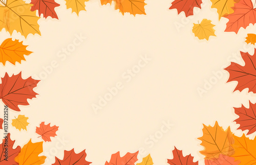 Illustration of Scattered Autumn Leaves in Warm Yellow, Orange, and Brown Tones Forming a Border on a White Background