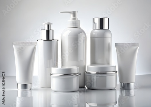 Illustration of set of blank cosmetic products isolated on white background in studio