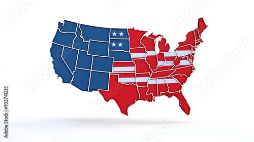 Illustration of the electoral map of the United States, highlighting key battleground states, American election, electoral strategy