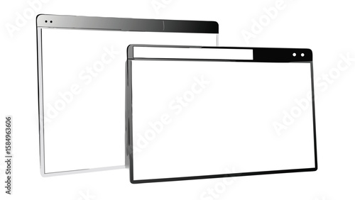Illustration of two computer screens with a white display and black and gray borders and top bars