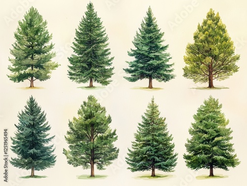 tree, evergreen, pine, spruce, fir, nature, botany, illustration, foliage, green, conifer, growth, landscape, environment, biodiversity, art, botanical, study, identification, species, leaf, trunk, branch, wood, ecology, shading, habitat, seasonal, texture, colours, detail, flora, ecosystem, conservation, planting, gardening, rural, scenery, natural, chart, educational, aesthetic, representation, research