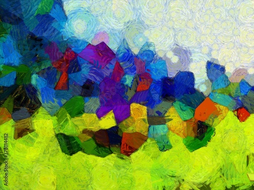Illustration style background image, various colorful abstract patterns, oil painting pattern, create impressionist painting style.