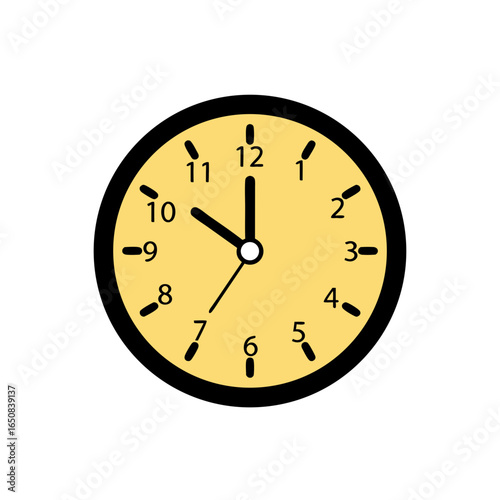 clock, time, watch, analog, face, dial, hours, minute, second, round, numeral, pointer, indication, horologe, counter, wall, desk, circle, yellow, black, ten, 12, 1, 2, three, 4, 5, 6, 7, 8, 9, 11, measurement, instrument, retro, vintage, modern, alarm, schedule, reminder, deadline, appointment, graphic, icon, symbol