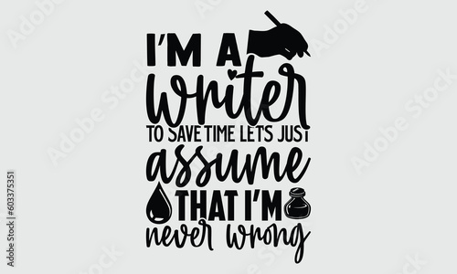 I’m a writer to save time let’s just assume that I’m never wrong- Writer T-shirt Design, Vector illustration with hand-drawn lettering, Set of inspiration for invitation and greeting card, prints and