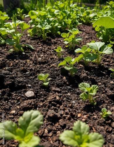 Image containing plant, garden, agriculture, vegetable, nature, food, leaf, field, soil, organic, grow, spring, farm, gardening, growth, growing, lettuce, seedling, crop, ground, potato, row, tomato,