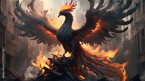fire, flames, bird, eagle, heat, hot, illustration, cartoon, vector, animal, orange, night, fireplace, burn, burning, nature, balefire, light, wood, red, design, phoenix, black, warm, dragon