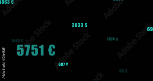 Image of numbers and currency icons on black background