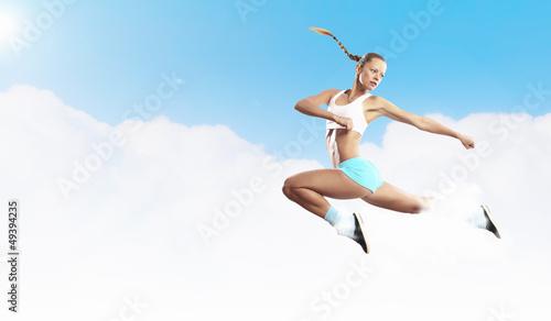 female, fitness, jump, exercise, beautiful, cheerful, body, sport, happy, joy, healthy, athlete, aerobic, beauty, energy, excited, fit, sporty, woman, people, person, full, grace, gymnastics, young, health, length, lifestyle, skill, action, acrobat, attractive, active, arm, activity, agility, balance, bicep, colours, smile, blue, elegance, smiling, jumper, gymnast, cloud, sun, aloft, town