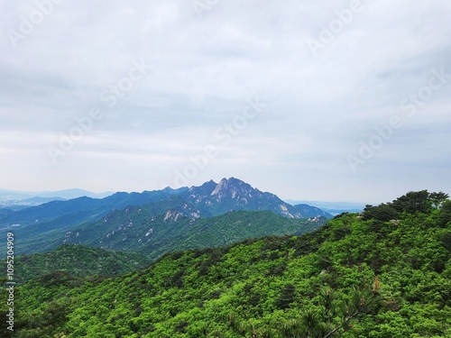 Image of summer scenery of Dobongsan Mountain near Seoul, Korea. Hiking in Dobosan National Park. korea mountains. trekking. korean landscapes. bukhansan national park.