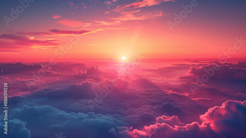 Image with warm colors transitioning from deep orange to light pink, reminiscent of sunrise skies, evoking emotions of calm and new beginnings, ideal for a banner stock photo