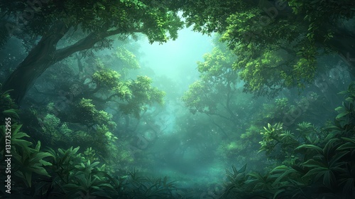 Immerse yourself in the beauty of nature. discover a serene forest with towering trees and vibrant plants.