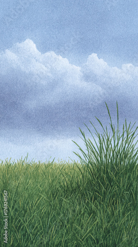 grass, cloud, blue, sky, nature, landscape, greenery, field, horizon, peaceful, outdoors, scenic, breeze, fresh, calmness, weather, flora, textured, artistry, ecosystem, vibrant, serenity, beauty, wildlife, landform, natural, photo, summer, environment, growth, watercolor, pastoral, skyline, countryside, rural, greenfield, tranquil, earth, surrounding, picturesque, view, ambience, atmosphere, serene, oasis