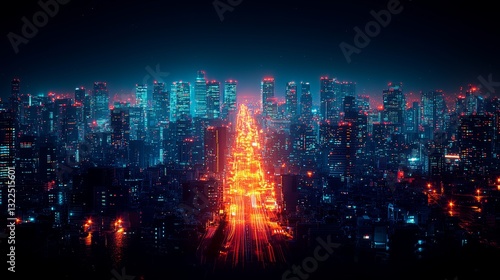 In a city at night, racing cars create dynamic flash effects and motion trails with long exposure photography, resulting in blurred light streaks against the background