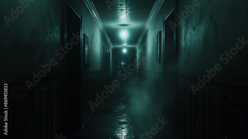 In a dark corridor, a mysterious light flashes and waves, capturing the essence of fear and tension. Its disturbing glow causes a thrill and tempts you to discover mysterious secrets.