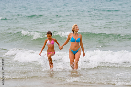water, sea, wave, nature, sky, summer, vacation, location, surf, fun, activity, people, outdoors, horizon, splashing, blue, leisure, background, relaxation, beach, sunlight, tranquil, nautical, climate, children, little, daughter, white, mother, female, eltern, beauty, family, happiness, body, girl, coastline, woman, beach, 2, ripple, bikini, swimwear