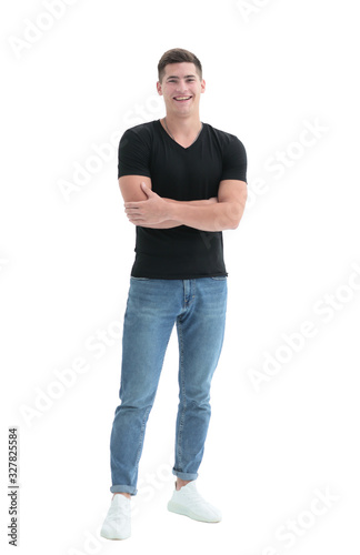 guy, casual attire, modern, personality, male, full-length, clothing, billboard, blueprint, black, student, man, isolated, jean, young, background, people, person, happy, photogenic, confident, white, adult, standing, looking, full, cool, friendly, 1, charming, lifestyle, youth, success, beautiful, masculine, racked, attractive, grey, denim, t-shirt, stylish, fashion, style, european, concentration, wearing, pocket, posh, alone, high