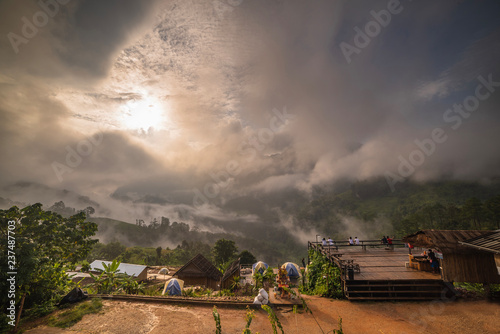 hill, sunlight, blue, orange, people, morning, light, background, travel, landscape, fog, evening, silhouette, sunset, tree, nature, sun, twilight, scene, winter, tour tourism, sunrise, colours, cloud, beautiful, siam, cold weather, sky, viewpoint, mountain, forest