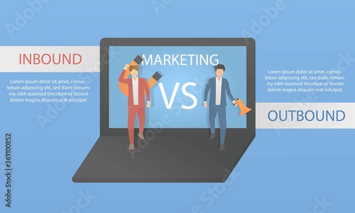 Inbound marketing and outbound marketing,business strategy for attracting customers using magnets and megaphone,online and offline marketing,concept Digital Marketing,Vector illustration.