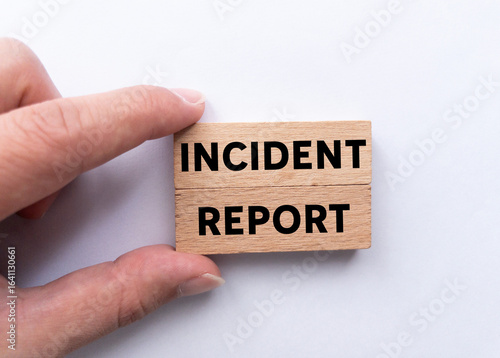 Incident report message written on wooden blocks on white background. Conceptual incident report symbol. Copy space.