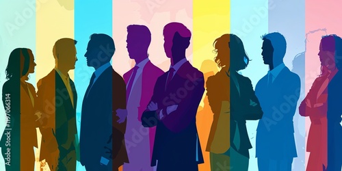 Inclusive business group as silhouettes in rainbow colors