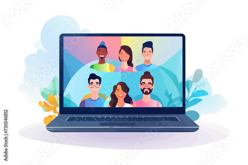 inclusive group of people on video call vector isolated vector style illustration