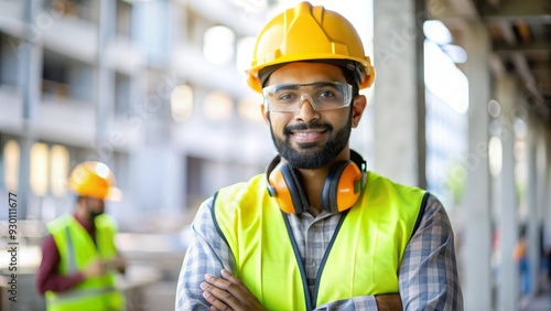 Indian Builder with Safety Gear - Builder fully equipped with safety gear, ready to work on the construction site.
