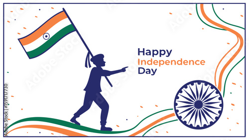 silhouette, person, flag, indian, independence, day, celebration, patriotic, national, holiday, colours, design, graphic, vector, movement, pride, orange, white, blue, background, illustration, copy space, celebratory