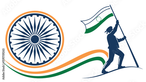 silhouette, flag, indian, person, national, pride, patriotism, celebration, nationalism, symbol, colours, orange, green, white, emblem, design, illustration, vector, graphic, culture, artistic, celebratory, patriotic