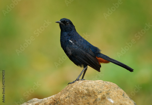 Indian robin Copsychus fulicatus passarine bird in Muscicapidae, widespread in the Indian subcontinent across Bangladesh, Bhutan, India, Nepal, Pakistan and Sri Lanka