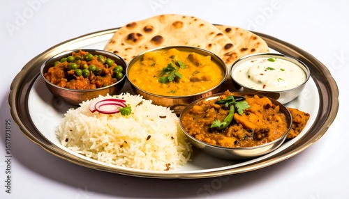 indian, platter, food, cookery, dish, rice, curry, vegetable, protein, spice, bowl, metal, portion, colourful, tasty, delicious, lunch, dinner, meal, plate, healthy, photo, vegetarian, balanced, hot, fresh, culture, tradition, serving, small, bowl, colourful, appetising