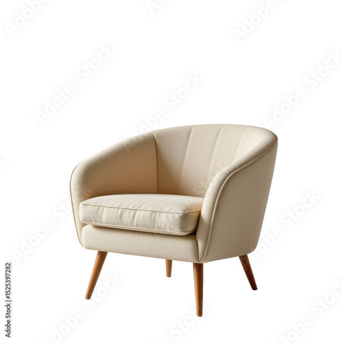 individual barrel style accent chair on transparent background, in a minimalist style, with simple lines, no shadow, pure lighting, high resolution