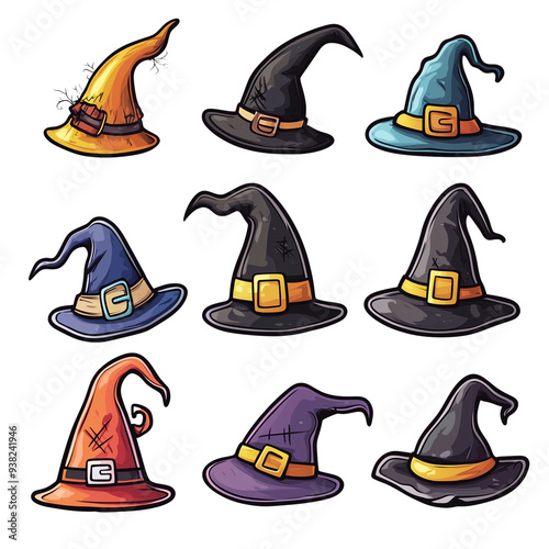 Individual Halloween Witches Hat stickers, icons, vectors, illustrations, books, cartoons, and stories. Transparent background.