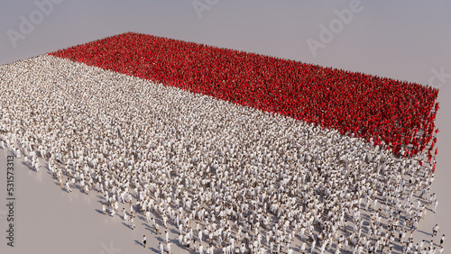 Indonesian Flag formed from a Crowd of People. Banner of Indonesia on White.