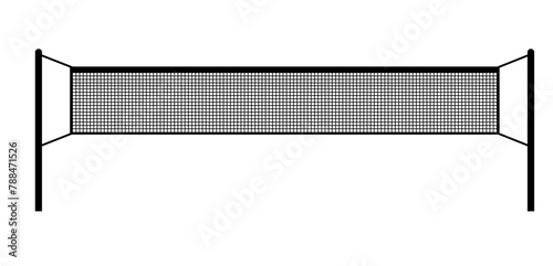 Indoor empty badminton net for badminton court, shuttle and racket. Racket sport game. Playing in the summer or on the beach. Indoor team sports. Lines pattern or template. volleyball game