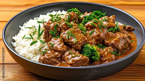 Indulge in a delectable culinary journey with this exquisite image of Beef Stew, showcasing tender meat simmered in a rich, savory sauce Experience the warmth and comfort of home-cooked goodness, as