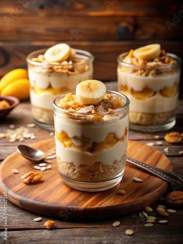 Indulge in a warm and comforting breakfast treat featuring layered oats infused with sweet banana slices and a hint of creamy texture
