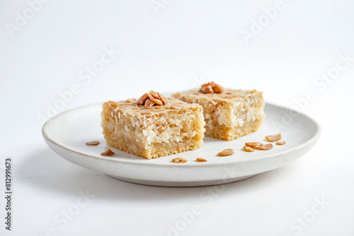 indulgence, bite, delicious, coconut, pecan, bar, served, white, plate, dessert, sweet, baked, food, treat, snack, nut, seed, pastry, confectionery, sugar, crunchy, tasty, deliciously, epicure, cookery, homemade, freshness, serving, square, garnish, topping, layered, filling, nutty, flaky, crust, gold, brown, appetising, delectable, deliciously, mouth-watering, flavorful, rich, texture, culinary, delight, bakery