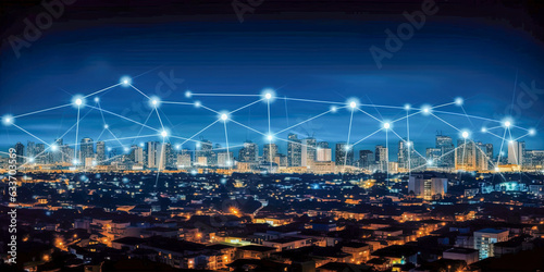 industry, architecture, car, city landscape, skyscraper, night, sunset, modern, technology, outdoors, construction industry, blue, environment, futuristic, landscape, equipment, city street, electricity, city life, panoramic, factory, no people, famous place, communication, travel, science, design, traffic, motion, dark, illuminated, dusk, lighting equipment, building exterior, glowing, built structure, bright, street light, power supply, development, powerline, generative, ai