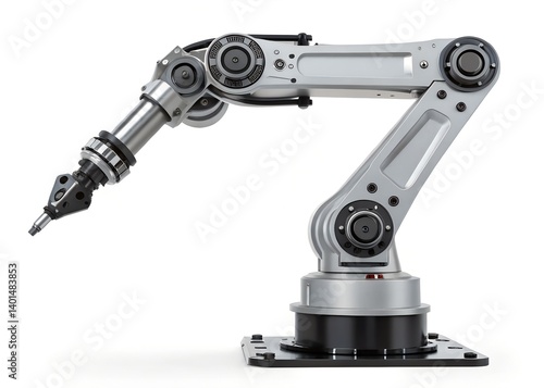 Industrial automation: Precision engineering is showcased, offering a detailed look at a robot arm. Metal structure demonstrates industry technology.