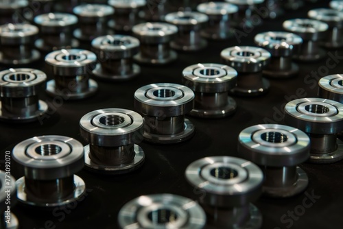 industrial bearings arranged in a pattern on black surface